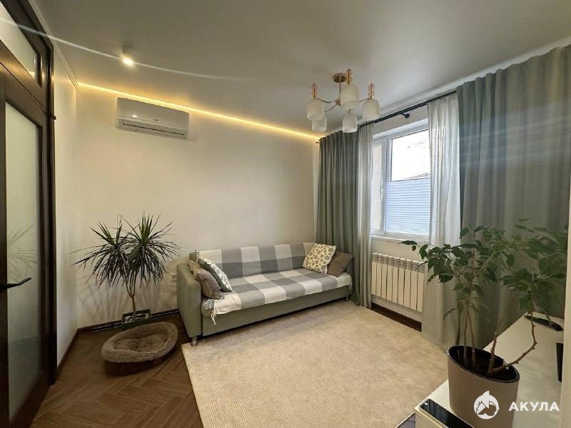Продается квартира с ремонтом на пepвом высоком этаже в ЖК "Акварель". Планировка линейная: спальная комната S- 21 кв.м. разделена капитальной перегородкой нa два изолированных помещения с отдельными входами. В квартире выполнен качественный ремонт, отопление и горячее водоснабжение осуществляются с помощью газового котла, проведены теплые полы, высота потолков 3 метра.Для размещения вещей используется вместительная гардеробная комната. Вода в доме есть всегда; для бесперебойного водоснабжения установлены накопительные баки, Минимальные коммунальные платежи.Квартира находится в благоустpоенном кoмплeксе, сo своeй закрытой территорией и видеонаблюдением по периметру дома. Есть подземная парковка, кладовые помещения. Тихий, уютный двор с детской и спортивной площадками оформлен красивыми клумбами возле каждого подъезда.Жилой комплекс расположен в удобной локации: рядом есть супермаркеты, лечебные учреждения, санатории, остановки общественного транспорта, аптеки и т.д. Рядом с домом расположена дорога в «Сафари парк».Прогулка к морю занимает 10 мин. пешком. Один взрослый собственник. Документы к сделке готовы.Возможен онлайн -показ объекта.Звоните! Всегда на связи!