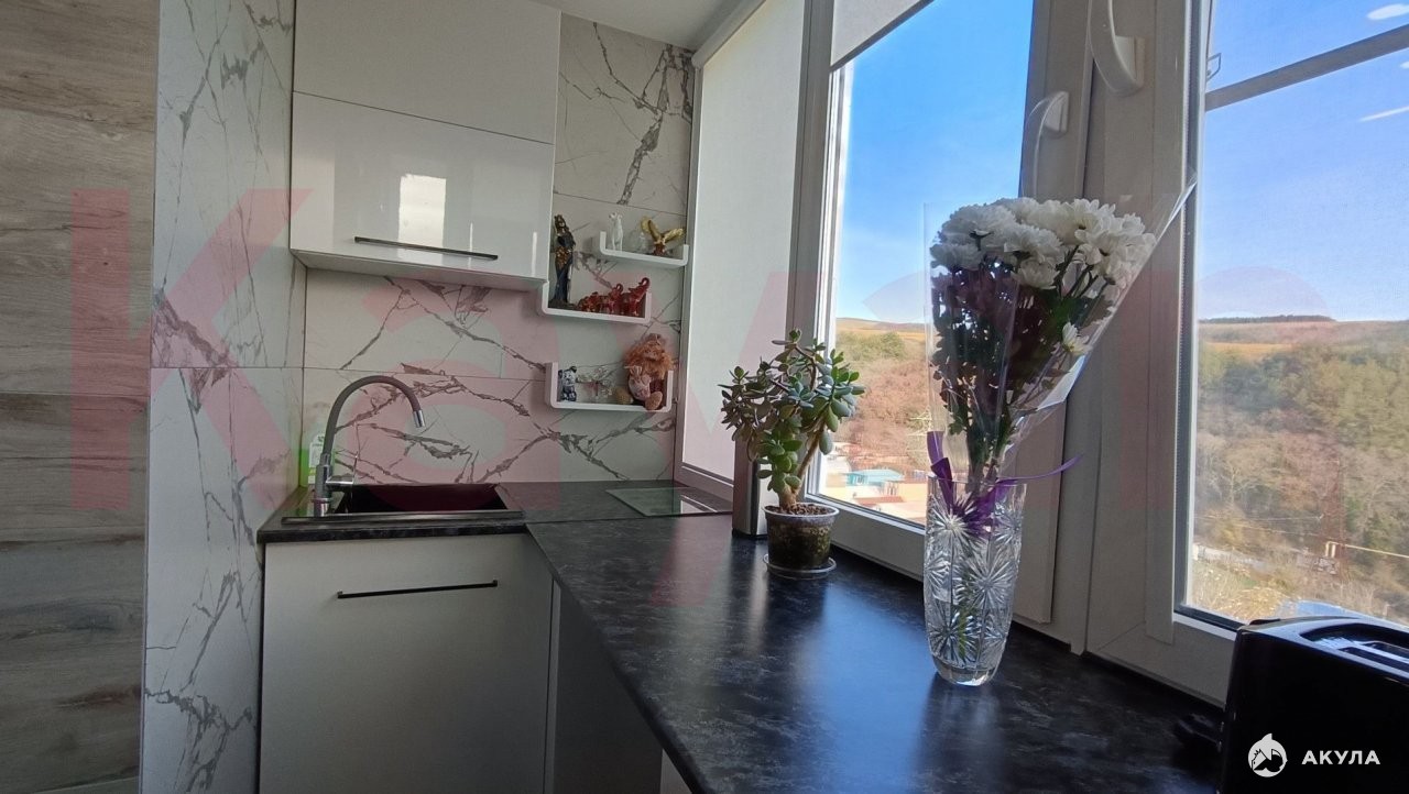 Продается комфортная, уютная квартира с новым ремонтом. Панорамное окно с изумительным видом, каждый метр в квартире продуман функционально. Для горячей воды установлен бойлер. Стиральная машинка с функцией сушки. Большой двухдверный холодильник. Диван и кровать фирмы Аскона. Удобная кухонная зона. Вам только занести личные вещи и жить с удовольствием. В доме есть накопительный бак, вода есть всегда. Благоустроенная придомовая территория. В шаговой доступности вся инфраструктура. До моря 15 минут пешком.