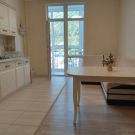 Сделан отличный ремонт, все комнаты раздельные, встроенная мебель, в спальне имеется гардеробная. Лоджия 7, 2 кв.м.застеклена, балкон 3, 8 кв.м.(с кухни) открытый, все комнаты и кухня оборудованы кондиционерами, в гостиной и кухне окна "в пол", отопление автономное, окна на горы....