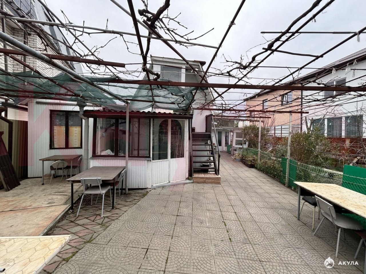 На участке дом с хоз постройками.
